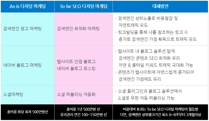 무엇 보다 As-is 디지털 마케팅은 이벤트 회당 적어도 500만원이라는 비용이 들어가지만,