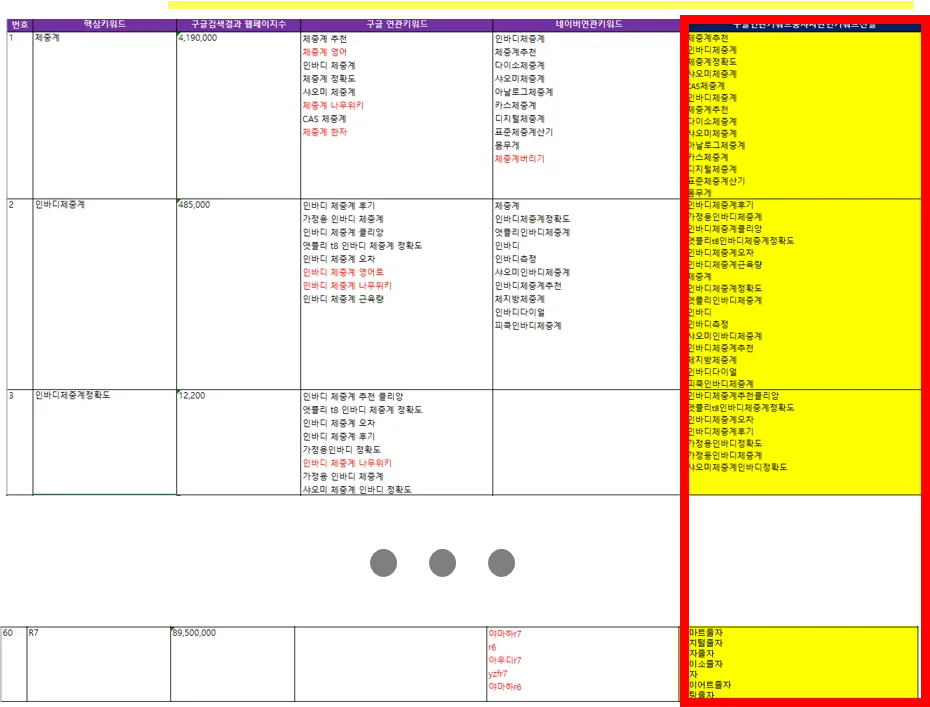 키워드 메트릭스를 바탕으로 구글/네이버/유튜브의 핵심키워드 별 연관키워드를 추출하여 전체적으로 사용해야할 키워드 셋을 정의합니다.