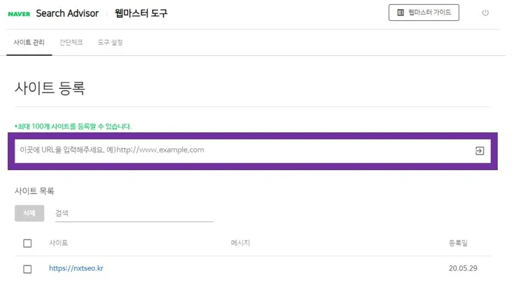 구글 서치콘솔과 유사하지만, 네이버 서치어드바이저는 네이버에서 인정하는 URL을 확인하고 등록해야 하며, 보안 설정(http->https) 전환 시 색인에 시간이 걸릴 수 있습니다.