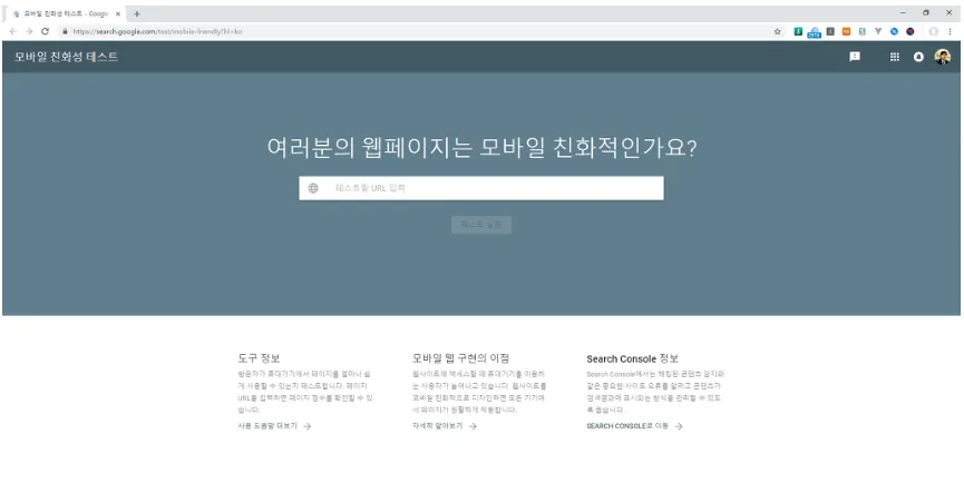 구글은 방문자가 휴대기기에서 페이지를 얼마나 쉽게 사용할 수 있는지 테스트하고 페이지 URL을 입력하면 페이지 점수를 확인 할 수 있도록 하고 있습니다.