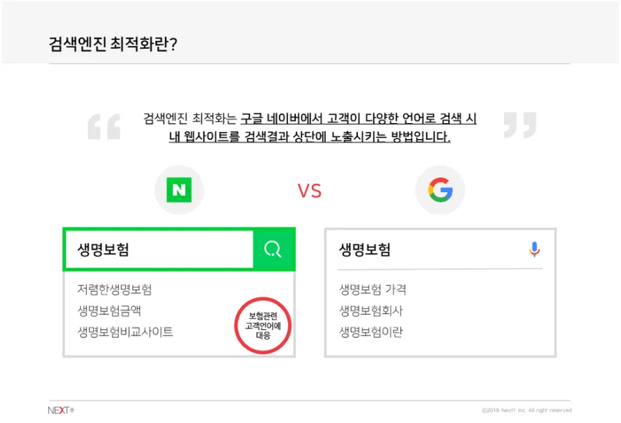 예를 들어, 고객이 인터넷에서 생명보험에 대해 알아보고자 한다면 다음과 같이 "생명보험" 키워드를 입력하겠죠?