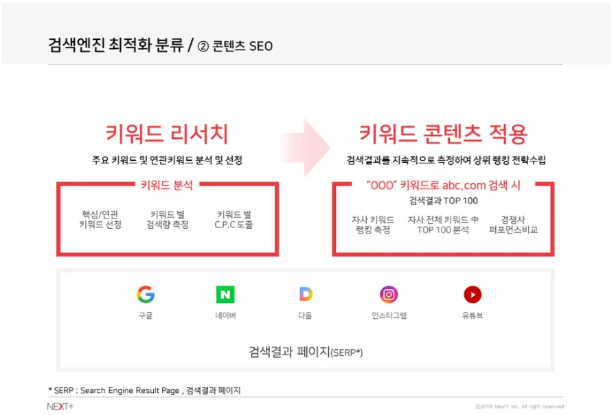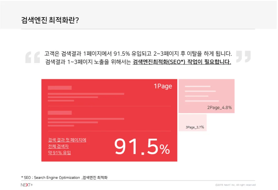 그렇기 때문에 검색엔진 최적화란 기법에 대한 노하우가 필요합니다.