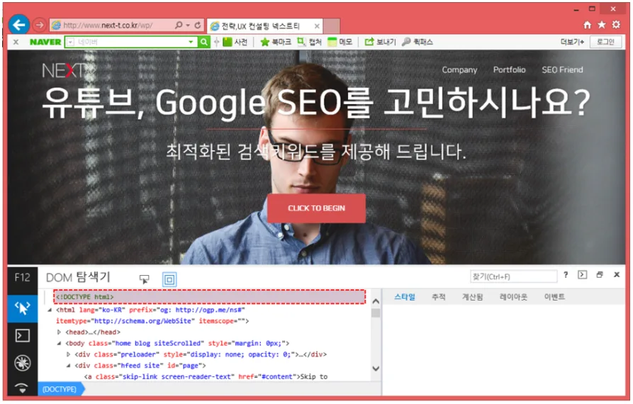 웹페이지에서 마우스의 오른쪽을 클릭 후 ‘소스보기’에서 확인해보세요!